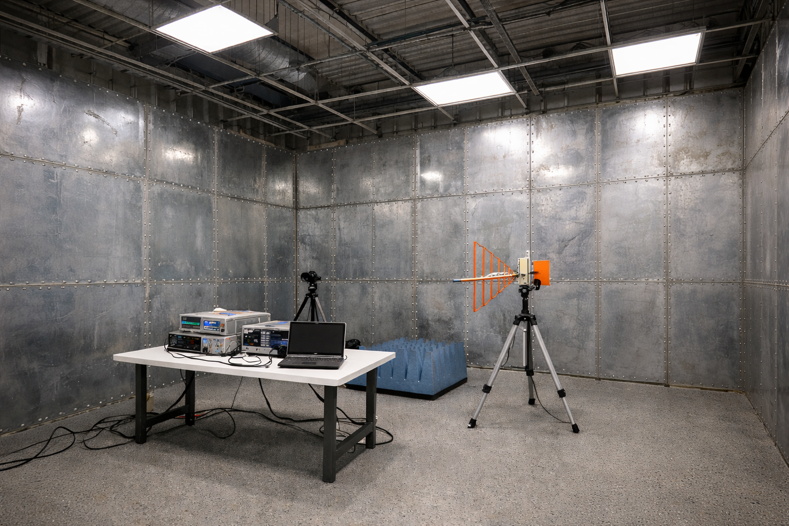 - Conductive shielding envelope (walls, ceiling, floor as required)